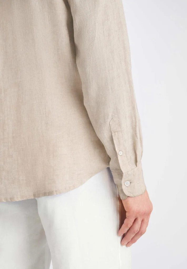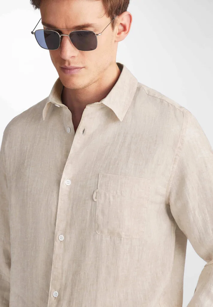 • La camisa Monaco presenta un canesú trasero curvo con pliegues para mayor comodidad y un bajo curvo con aberturas laterales para mayor libertad de movimiento. Hemos conservado el estilo clásico de botones en la parte delantera y los puños, cuello de dos piezas y, para un toque moderno, hemos añadido un bolsillo en el pecho en forma de U con una práctica presilla para gafas de sol, para un look veraniego y elegante.